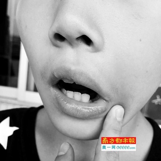 张先生向记者提供的照片显示,小远的左脸腮帮又红又肿。“更为严重的是,我儿子左边下面一颗牙齿在被老师扇了耳光之后,直接掉了下来。”记者昨日上午在学校采访时,找到了被打的学生小远。他的左脸依然有些红肿,左边下排的确有颗牙齿已经掉了。不过小远说,在被打之前,他这颗牙齿有一些松动,但被老师打了之后,就直接掉下来了。